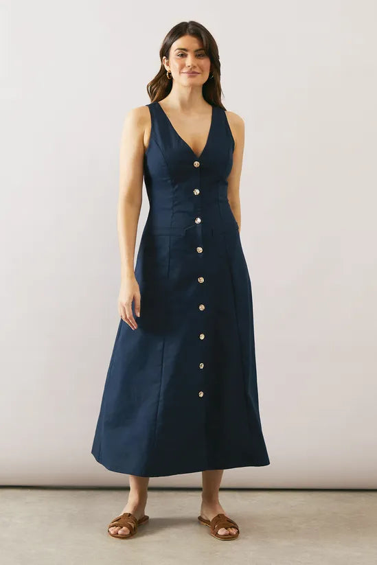 - Elegant V-neckline front and back for a sophisticated silhouette
